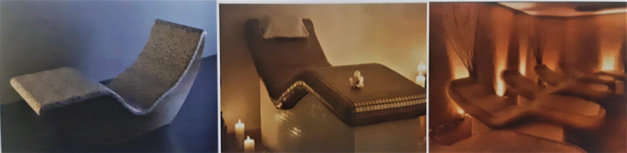 Isıtılmış yatak oturma bankları SPA tedavileri arasında vücudun kan dolaşımını hızlandırmak, bağışıklık sistemini güçlendirmek, sinir sistemini kontrol altına almak, stresi azaltarak rahatlamayı sağlamak ve ideal dinlenmeyi sağlamak amaçları ile tasarlanmaktadırlar. Yatakların dış yüzeyleri yüksek kalitede dekoratif seramik, doğal taş ya da cam mozaik ile kaplanmaktadır. Isıtma sistemleri yatak yüzeyinin hemen altındadır. Derzlerde mekanik dayanıklılığa sahip epoksi malzemesi kullanılarak en yüksek hijyenik standartlar sağlanmaya çalışılmıştır. Isıtılmış yatakların bulunduğu mekanlar kullanıcıların tercihlerine göre ışıklandırma yapılarak renk terapisi, rahatlatıcı müzik eşliğinde ses terapisi ile zenginleştirilebilmektedir. Isıtılmış yataklara uzandığınızda, sıcaklığın vücudunuza verdiği rahatlama hissi ile birlikte kaslarınızda oluşan kramplar ve gerginlikler çözülmekte, ağrılar azalmaktadır.